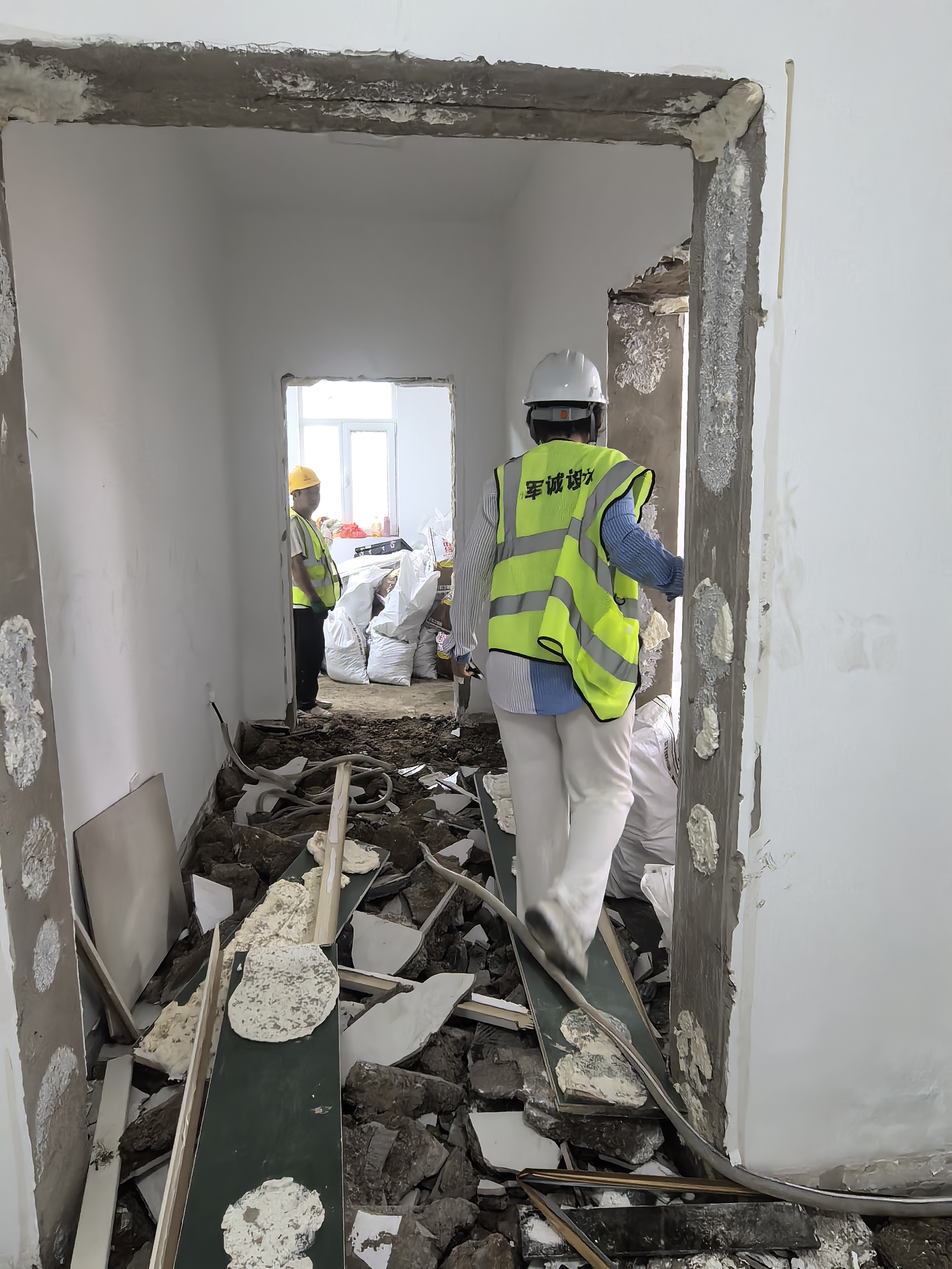 清晨的阳光透过未完工的窗户洒进房间,设计师李工、田工戴上白色安全帽,背心上“建筑设计”几个字在晨光中格外醒目。她与施工方负责人站在粗糙的水泥地面上,手中图纸展开,目光扫过墙面的每一处细节。这是“军诚设计”团队本周的第三次现场验收,也是建筑设计单位日常工作中最平凡却至关重要的环节。